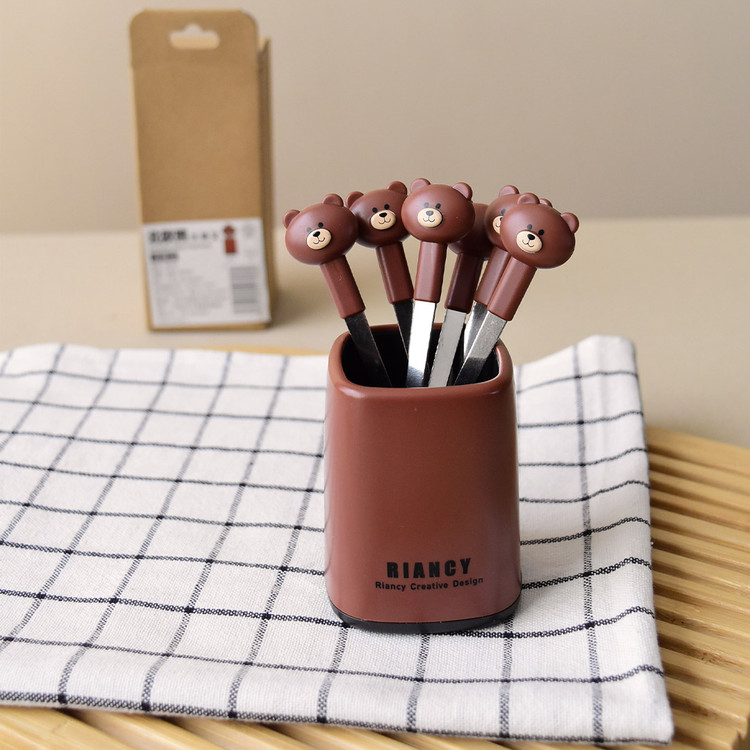 چنگال زیتون و خرما خوری طرح خرسی-پک 6عددی