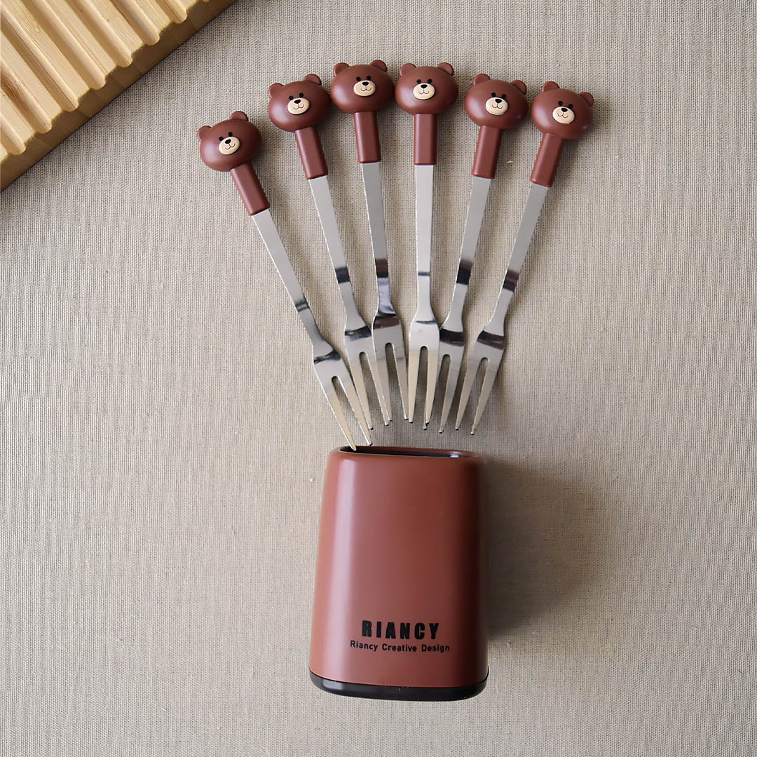 چنگال زیتون و خرما خوری طرح خرسی-پک 6عددی