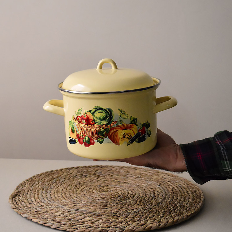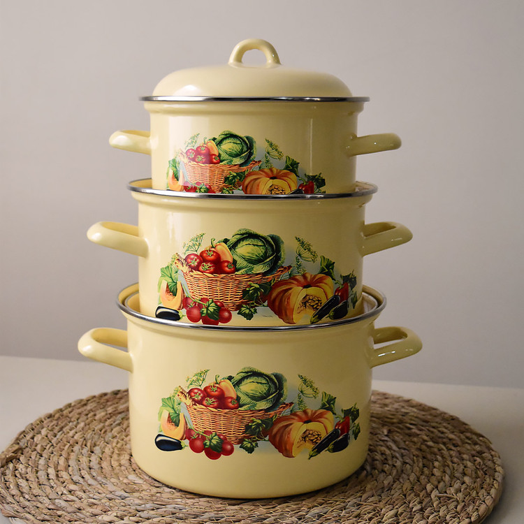 سرویس قابلمه لعابی روسی طرح کدو لبه استیل-مدل خمره ای