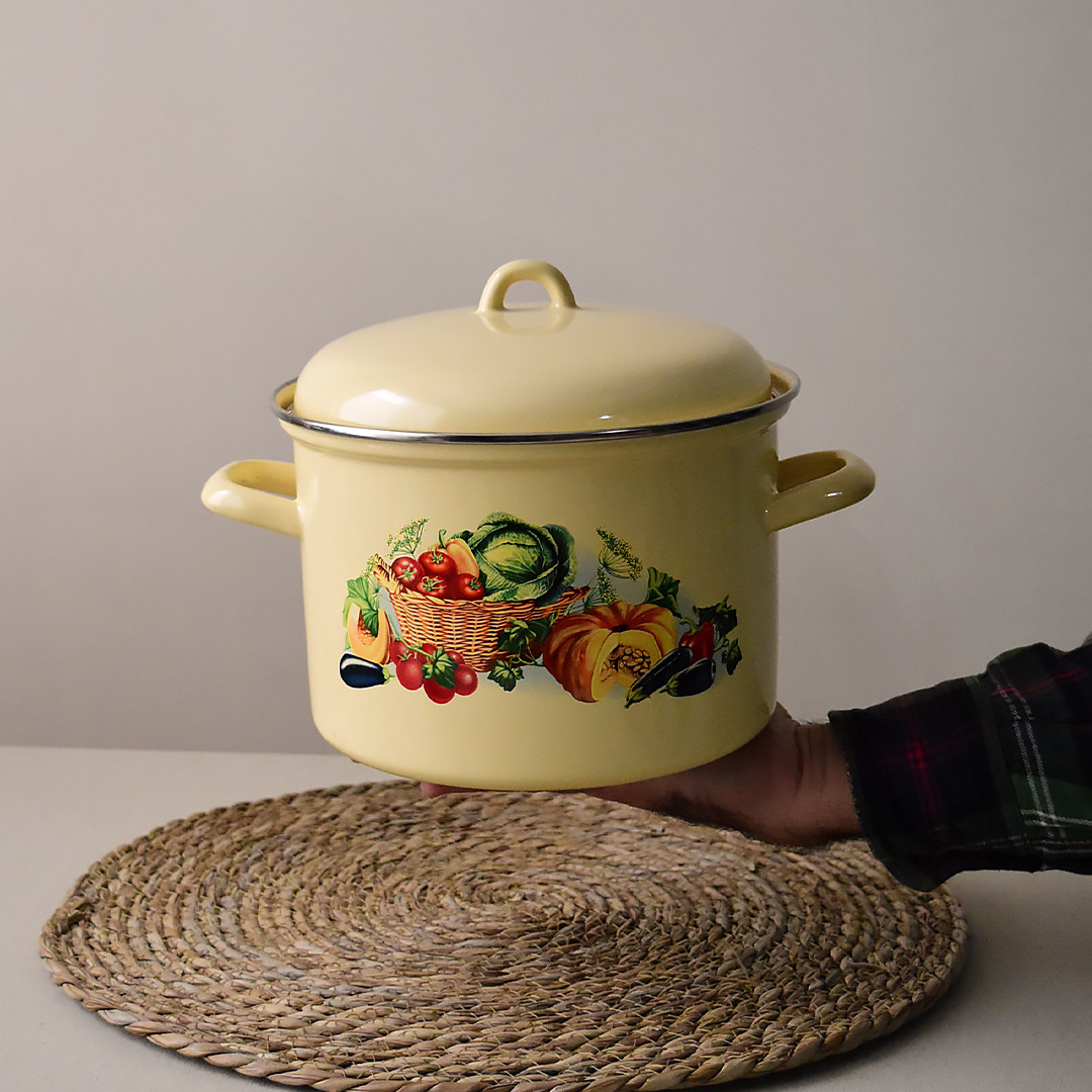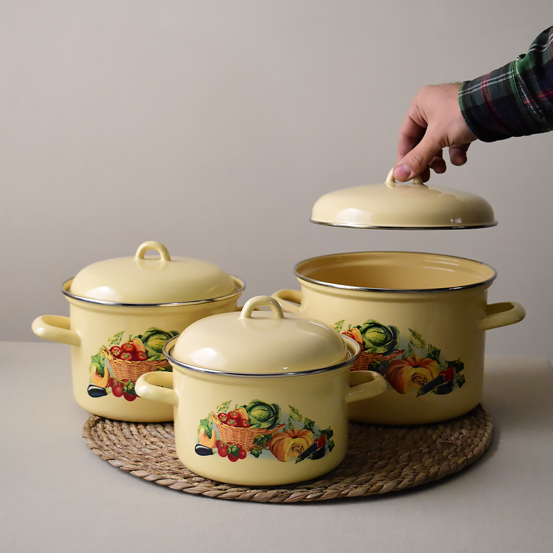 سرویس قابلمه لعابی روسی طرح کدو لبه استیل-مدل خمره ای