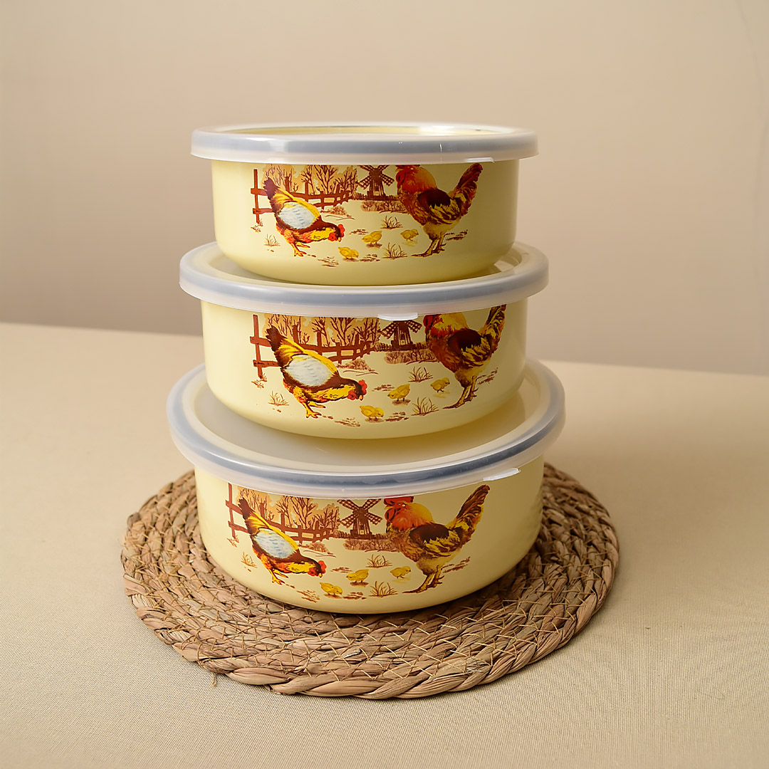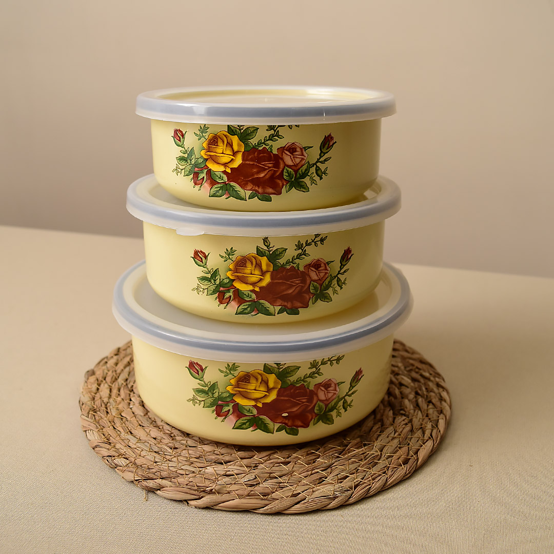 ظرف غذا و ظرف نگهدارنده لعابی روسی-3تکه طرحدار